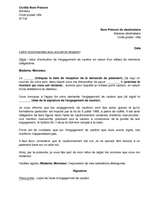 Lettre de refus, par la caution, de payer les loyers impayés en raison du défaut de mentions obligatoires sur l'acte de cautionnement