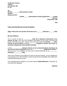 Lettre de réponse défavorable à la demande de sous location du local commercial